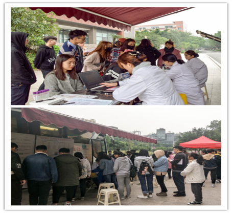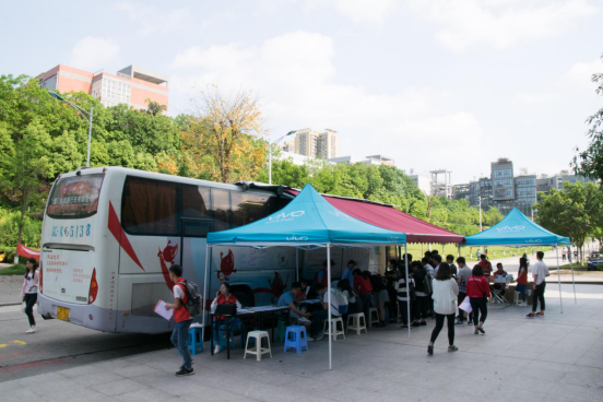 大巴车刚进学校,对于刚进大学的小萌新们还是很新鲜,他们也难免有些疑问:“这个采血车正规吗?卫生吗?会不会有传染病?”为此,志愿者们也耐心地作出了回答:“各位同学我们的采血车是合川区中心血站唯一的采血单位外采科进入学校采血,和步行街采血车,南津街采血车是一样的,只不过那两个采血车是固定的,而今天进去学校的采血车是流动的,我们是为了大家的方便才联系本校领导经同意进入学校的,是合川区政府,区卫生计生委支持的公益性单位,请大家一定不能道听途说,而且我们合川几所大学共同为合川区的无偿献血事业做了10来载了,而且我们车上消毒采血设施设备都是严格把关的,请大家放心,自愿无偿献血是自愿的,不会勉强任何人,谢谢大家理解与支持!”
