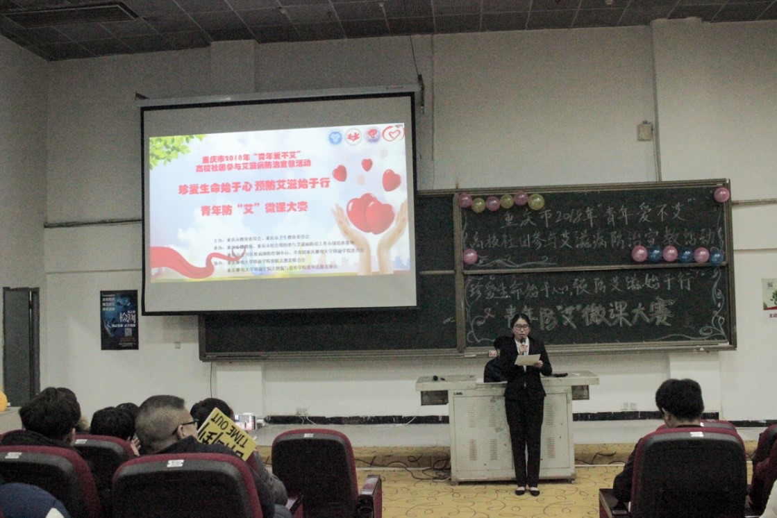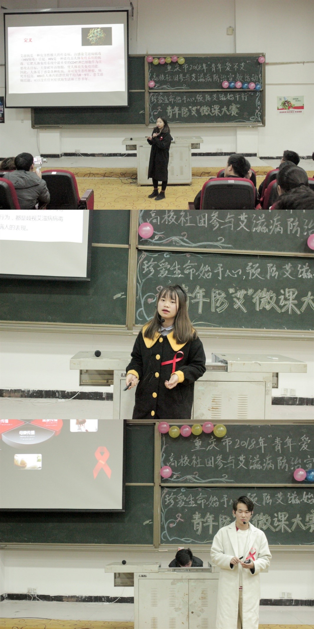 2018年12月12日,由重庆市教育委员会、重庆市卫生教育委员会主办,重庆市健教所、重庆市社会组织参与艾滋病防治工作市级培养基地、重庆市合川区疾病预防控制中心、 共青团重庆邮电大学移通学院委员会承办,重庆邮电大学移通学院青联志愿者联合会、重庆邮电大学移通学院大数据与软件学院青年志愿者协会协办的以“珍爱生命始于心 预防艾滋践于行”为主题的首届青年防“艾”微课大赛在3202拉开了帷幕。