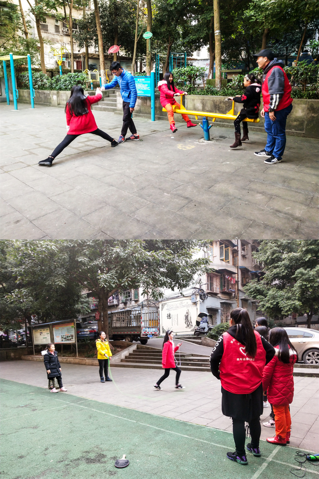 今天,又一次来到了这里,小朋友们依然满怀期待的等待着志愿者们的到来,早早的就来到了草花街等候。这里有许多小朋友,大家手牵手一起玩耍着,冬天的寒冷也没能抵挡住他们玩耍的心。但在这里,并不是每个小朋友都很活泼的,也少不了有几个腼腆、害羞和不知所措的小朋友。她们站在一旁,默默地观看,恰似眼前的一片和谐的场景都与她们无关,就好似被抛弃的孩子。这一切,志愿者们默默地看在眼里,并向她们走去,与她们耐心的交谈,并进行耐心的说教。在志愿者们的帮助下,这群小朋友逐渐开始走向人群,尝试着和大家一起玩耍,尽管对于这种场景她们还有点害怕,但是没关系,因为她们迈出了第一步。相信,在不久的将来,她们一定会打开自己的心房,融入其他小朋友的活动中去。