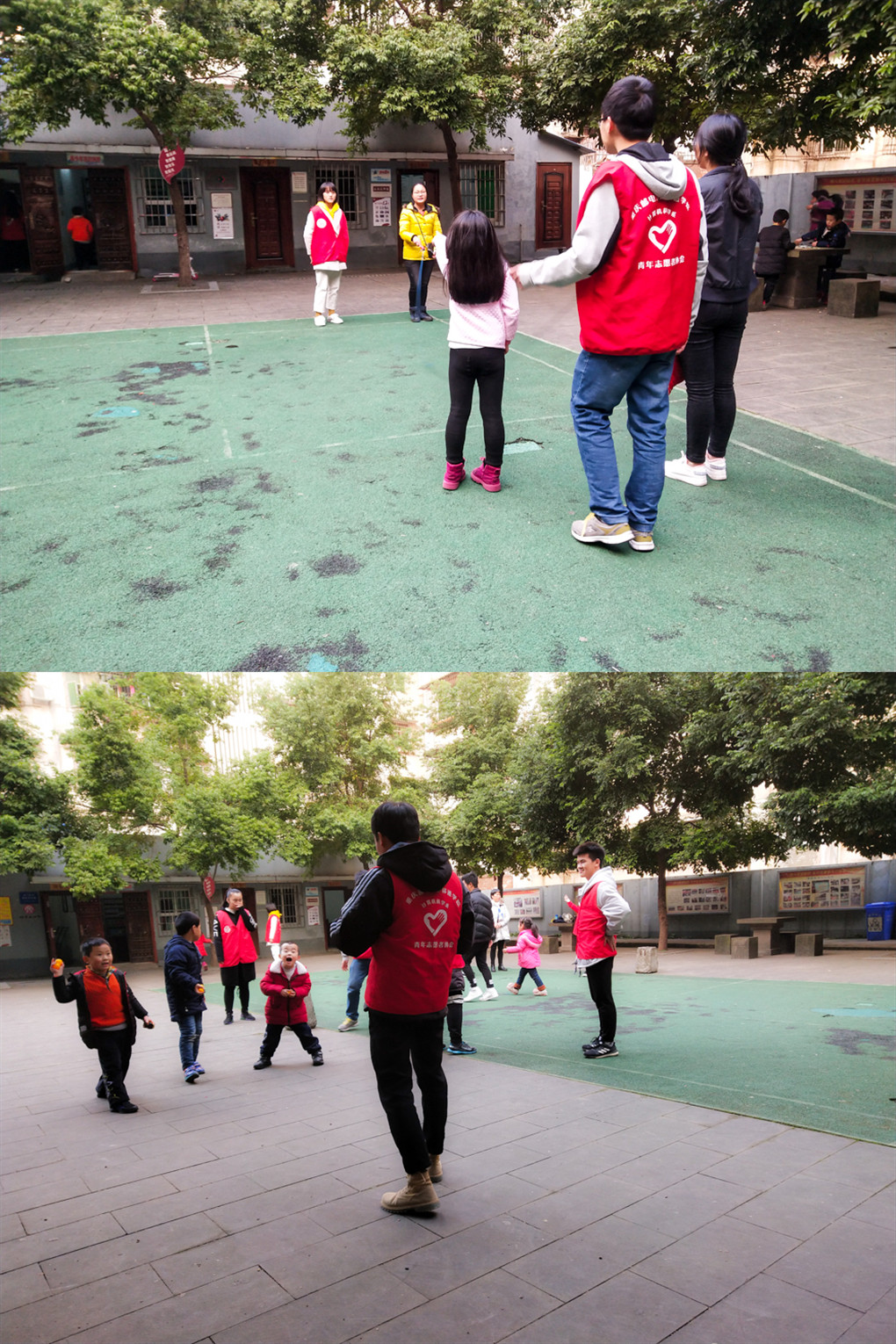 快乐的时光总是稍瞬即逝。彼此都感觉还没怎么好好相处,活动就又要接近尾声了。而此时,小朋友们依旧热情满满,真诚的邀请志愿者们再多停留一会儿,多陪她们玩一会儿。在小朋友们的热情邀约下,志愿者们又一起陪小朋友跳跳绳,一起娱乐,一起玩耍,开心又快乐。