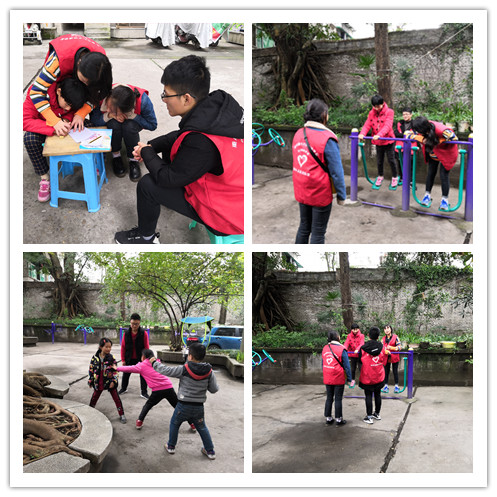 我们像往常一样到达特殊教育学校的门口后,看到那些孩子已经是站在那里等待我们的到来,他们高兴地跑过来去拥抱我们的志愿者们,要叫志愿者带他们去玩,想必小朋友们早已迫不及待了。小朋友嘴里不停的叫着:哥哥,姐姐,快来快来,我们一起玩游戏吧。他们脸上充满了喜悦的笑容,这不禁的就让我们志愿者也会像小孩子一样幼稚起来,就像回到童年和同龄人在院里一起玩游戏时的一样,那种感觉暖暖的。志愿者分头行动,有的陪小朋友玩抓人游戏,有的去陪小朋友写作业,有的在和小朋友玩老鹰捉小鸡,还有的和小朋友谈着有趣的事。虽然有的孩子不能表达清楚自己想说的话,但志愿者没有因此就失去了耐心,而是更加耐心的去教小朋友玩各种各样的游戏。