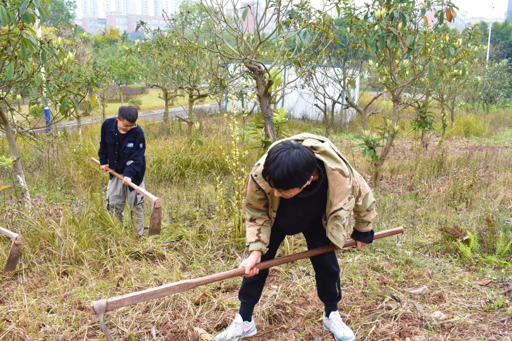 土地沉寂了一个冬天,只有顽强生长的野草陪伴着它。然春日正是播种的季节,本次农耕活动的主要目的之一便是除去肆意生长的杂草——尽管它们顽强的生命力令人敬佩,但还是得请它们为需要培育的种子让位。目的之二,则是为土地松土,为待播下的种子做好准备。农耕活动一开始,参加活动的同学们便自发地进行了分工安排:女生负责拔去杂草并将清除的杂草运送到指定地点,男生则对自留地的土地进行松土。此值初春,仍称得上一句“春寒料峭”,然自留地里劳动的气氛热烈,同学们以积极的心态,认真负责的态度,有条不紊地进行劳作。整个过程中,每一个除草与翻地的动作都带着同学们对于农场的新的希望,带着他们对于农场的新的期盼以及对农场的美好憧憬,而同学们额头上的汗珠便是最好的证明。