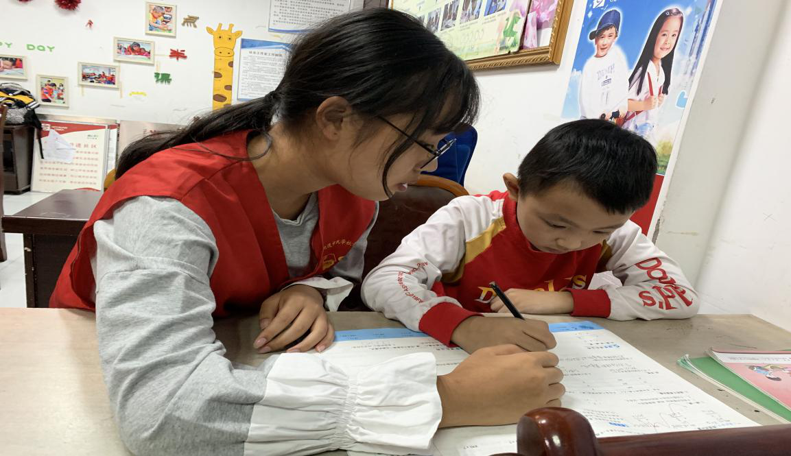 等到差不多小朋友都坐好了,便踏上了今天的学习之旅。别看小朋友们平时有多活跃,但真做起作业来,可就是两个样了。作为新一届的志愿者,其实内心是非常紧张的。但看着小朋友们一个个活泼的面孔,志愿者们很快便融入了这个温馨的大家庭,与孩子们共同度过欢乐的2小时。志愿者们观察的非常仔细,小朋友们在哪一个地方卡壳了,他们都会及时发现,总会非常有耐心的为小朋友们排忧解难。