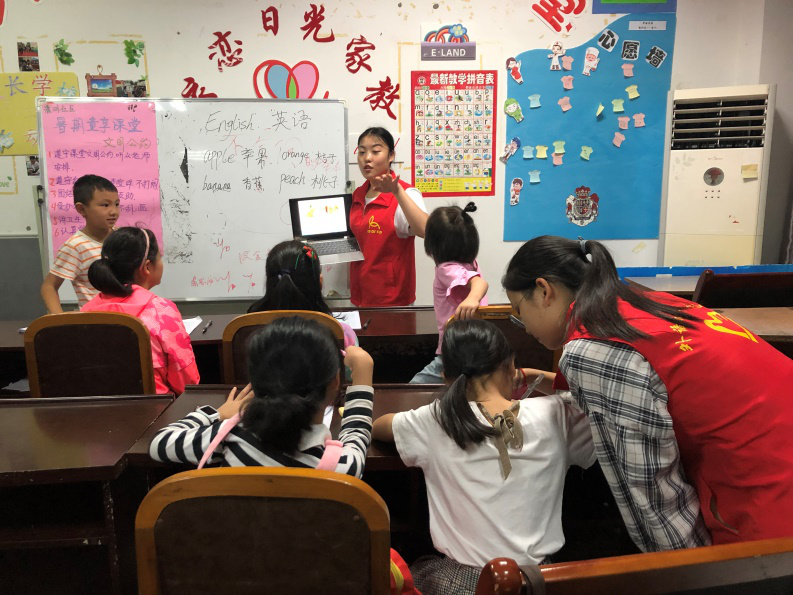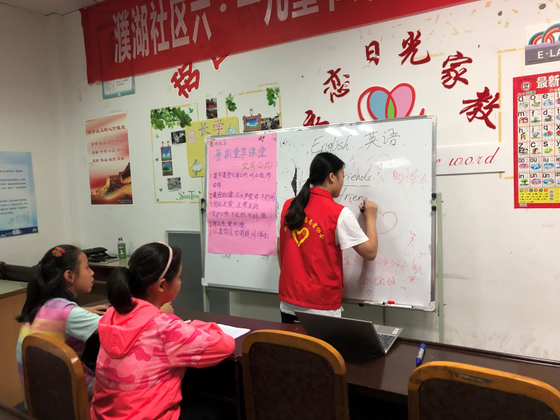 九月凉风吹拂志愿者鲜红的衣角,在这秋高气爽的周六里,外语系青年志愿协会“流动外教站”在濮湖社区顺利进行了开班活动。
