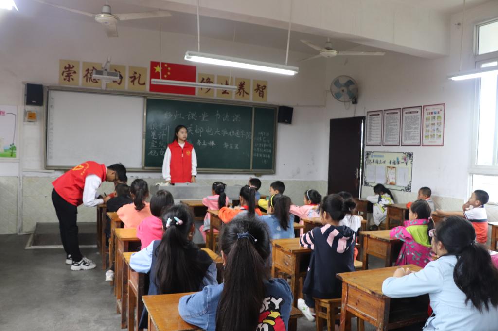 新学期开始,为进一步增强大学生的社会实践能力和提高综合素质,扩大志愿服务活动的辐射范围,帮助到更多的留守儿童,积极弘扬“团结、奉献、友爱、互助”的志愿服务精神。10月9日,重庆邮电大学移通学院身着红马甲的志愿者们,有组织的来到了合川区东渡小学,内心对“彩虹”充满着新的欣喜与期待,第十期彩虹课堂开讲啦!