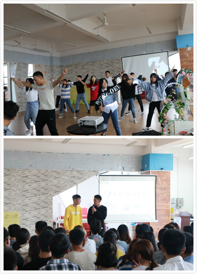 活动包含两个活动:见面会和破冰活动,在见面会中,干事们准备了各种各样的节目,跳舞、相声,每一个节目都呈现出生动有趣的画面。舞蹈节目《小苹果》展现了青联人的青春与活力,展示了团队的默契,集体的凝聚力,他们在青联这个大家庭,共欢笑,共成长,共拼搏,共收获,也能用最好的精力去做志愿服务;来自东北的两位小可爱用相声的方式积极展现自己,用对话表达出对幸福的向往,能在青联里寻找到属于自己的一片天空,发现更好的自己而努力。