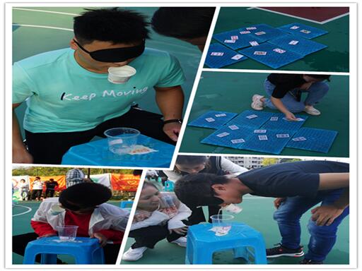 一共准备三个团队游戏:“夹气球跑”,“你说我做”,“王牌对王牌”,每个游戏都是在考验团队的配合能力。第一次游戏环节“夹气球跑”,每两个人背靠背夹住一只气球从起点向终点跑,这需要两个人之间的默契配合,统一步伐共同前行。“你说我做”,指挥官需引导蒙眼的组员进行环绕障碍物,把水倒入杯中,再用嘴衔住再倒入另一个杯中,充满节奏感的音乐无疑为这个环节增加了难度。“王牌对王牌”,这个游戏考验的就是一个团队策略,欢乐斗地主的背景音乐下,组员需要按照A至K的顺序依次翻出来。