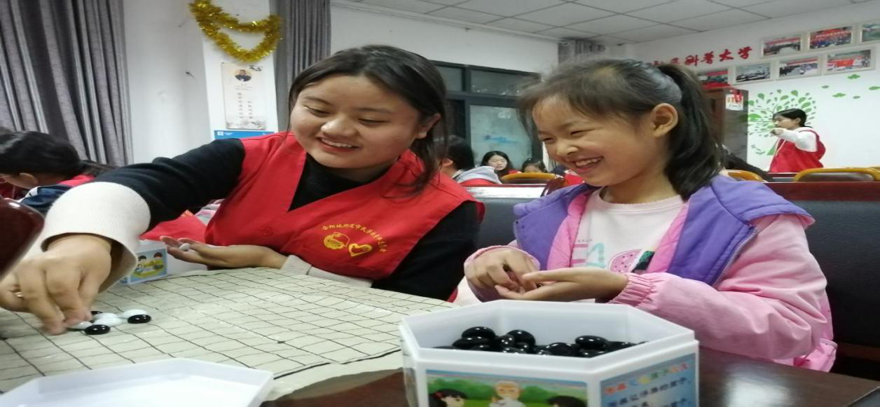 为了丰富小朋友们的课余生活,在志愿者们帮助下,小朋友们完成作业后。志愿者们与下朋友开始棋艺的比拼,你来我往,斗智斗勇,好不快乐。丰富多彩的德育活动能够培养学生良好的道德品质,锻炼学生坚强的意志,养成良好的行为习惯,让他们能够在德、智、体、美、劳的全面发展。