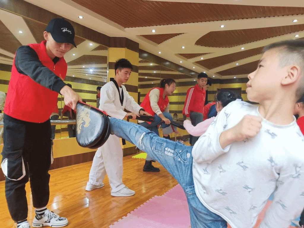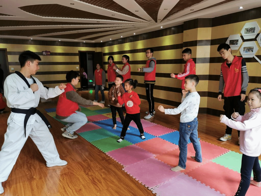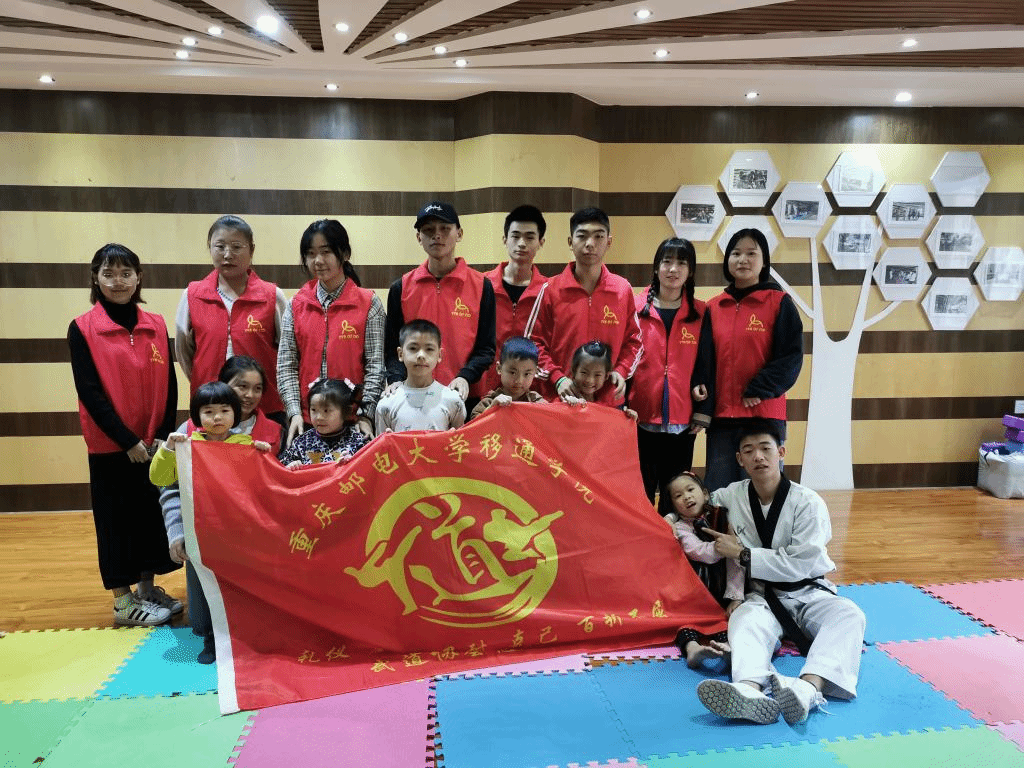 2019年11月9日,重庆邮电大学移通学院武道协会志愿者支队的志愿者们带着小朋友们来到沙坪社区活动室教授她们跆拳道和散打的一些简单动作,随着天气日益转凉,多参加武道活动有益于小朋友们得身心健康。旨在强化大学生的思想道德和志愿者服务精神,争做优秀志愿者。