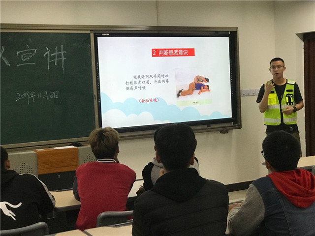 为普及校内应急救援知识,培养心肺复苏急救技能,2019年11月8日晚上7点,重庆邮电大学移通学院蓝天应急救助志愿服务专项支队在竹逸B101开展