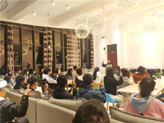 培训会接近尾声,快“下课”了,志愿者们慢慢得心应手乃至游刃有余,大家皆为本次手语培训会交上了一份满意的答卷。本次培训会让志愿者们学习到了一些用于日常交流的手语,这对于今后针对聋哑儿童活动的开展大有益处。培训会的最后所有参会人员对着镜头竖起了大拇指。志愿服务路上,我们不停地完善着自己!