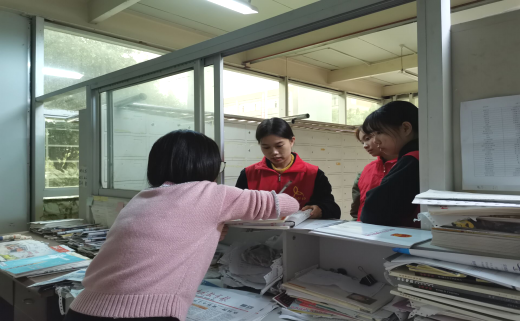 志愿者们都工作得非常仔细,非常认真。完成这些任务之后,志愿者们依然自觉站成一排,安静的等待着罗老师分配书籍和报刊拿到书籍和报刊之后,志愿者们双手环抱着书籍和报刊,带着热情踏上送报之路。到了相应的办公室后,志愿者们伸出他们礼貌的小手敲响了办公室门,以礼貌的话语送出书籍报刊,如春风般温暖人心,似乎天气都变得没有那么冷了。待志愿者们都完成任务回到整理收发室后,大家进行了活动总结,从每个志愿者的讲述中我们每个人都能从中获得收获。