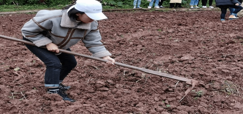 为进一步提高同学们对我校“完满”教育的理解,外国语言文学系德语二班的同学们于2019年11月19日进行了远景农场农耕活动。同学们聚在一起,在下里巴人门口进行签到,之后男同学们前往储物室,从储物室中领取了铲子锄头等农具,前往农耕地点:外语系的自留地。