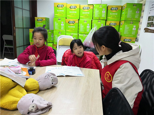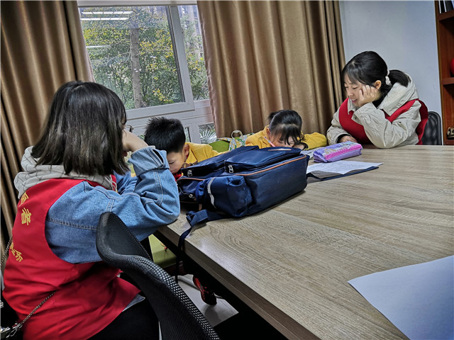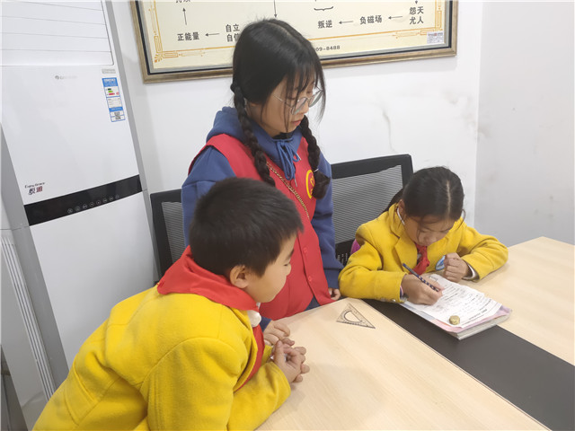 刚到这里,办公室已经坐着几位小孩了。几位小孩看到志愿者们还有些拘谨,但在志愿者们关怀的询问下,小朋友开始活泼起来,认认真真地写起了家庭作业。不久后,门外传来了小朋友们的嬉闹声,是其他小朋友们来了。进了房间,小朋友们见到了志愿者们便马上停止了玩笑,乖乖地坐下拿出了作业。志愿者分别坐在小朋友们的旁边,耐心仔细的辅导着小朋友们做作业,画面看起来十分的温馨。无论是志愿者,还是小朋友的脸上都露出了愉快的笑容。