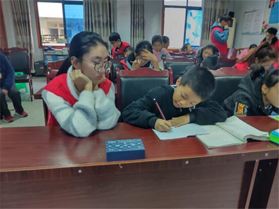 都说学习是自己的事,被动和主动都是自己的选择。在志愿者还未到达目的地的时候,小朋友们期待志愿者们的到来,他们是那样的开心和喜悦。一进活动教室,小朋友们便乖乖地坐在自己的座位上,拿出课本潜心做题,志愿者们也都各就各位,一对一专心在一旁检查,辅导。志愿者们都知道,速不达,而,慢则精。小朋友们并没有想要快点完成作业而囫囵吞枣,志愿者们也没有因小朋友不会而盲目辅助,而好心地立马为小朋友讲解。思考,是一个人必须学会的,是一个人一生都需要的宝贵财富,志愿者们并不能因为好心而去消磨孩子们锻炼思考,思维的机会。志愿者们在小朋友们向他们发出求助时,他们才为他们精心讲解。学习的时间总是弹指间便匆匆流过。辅导完成后,便开始了和小朋友们快乐的玩耍时间。