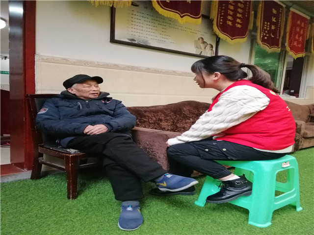 天空飘着下雨,吹着寒风,各位志愿小同志整齐有序地迈着步伐,向养老院走去。发丝被风扬起,但吹不走的是志愿者洋溢在脸上的笑容。期待与老人们的见面,期待老人们温暖心底的笑。推开养老院的大门,一眼就能看到老人们安安静静的坐在沙发椅子上,志愿者们带着微笑以及温柔的嗓音与老人们交谈,关心老人近来的身体状况、吃住情况以及他们的保暖问题。随处可见志愿者拉着老人的手在交谈,尽显一片温馨。