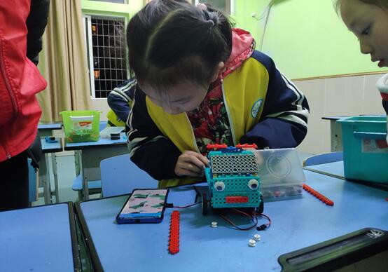五点半活动正式开始,小朋友狂奔到活动教室,迫不及待的开始机器人的创作,在志愿者们细心的指导下小朋友们,不一会儿,一个个活灵活现的机器人展现在大家的面前。在大家的精心操控下,机器人完美地完成一项又一项工作任务。
