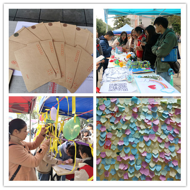 本次系列活动由四个子活动组成:“以语之言•感恩之情”,在便利贴上写下感恩祝福语,贴在感恩墙上;“以笔之文•承人之恩”,在黄丝带上写出感恩诗句或感恩成语,系在红绳上;“以线牵情•感恩师之行”,制作以毛线作品为主的手工作品,后期选取优秀作品赠予老师;“尺素传真情•幸而有你”,领取信纸、信封,写感恩书信,经“驿差”送给对应同学或老师。