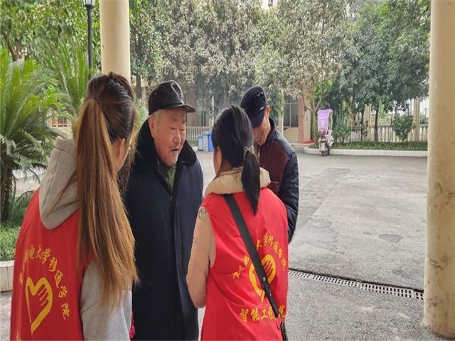 刚进入南津街敬老院的大门,志愿者们就看见正打着拳活动筋骨,摆着龙门阵的老人们。老人们因为志愿者们的到来显出格外的热情,嘴角的幅度都隐约张大了一些,浑浊的眼睛也焕发出了精神。志愿者们很快就与和蔼的老人们达成了一片。志愿者们与一位老人聊起了自己往昔的岁月,述说当年的时代背景下自己的生活和自己生命中的一些重要转折点。