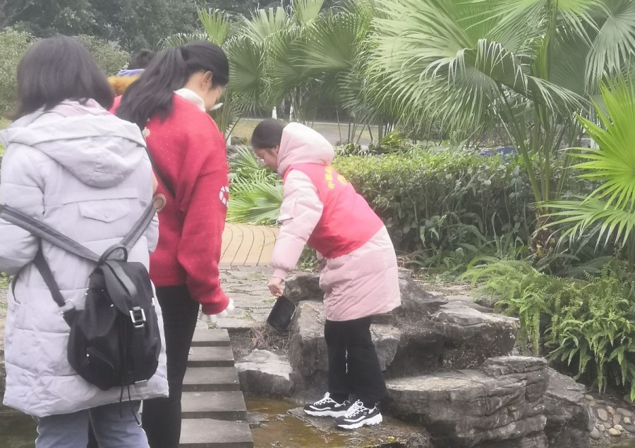 在当天下午四点,同学们在第六教学楼门口准时集合,青协负责人为他们发放志愿者马甲,在团支书的组织下,同学们分好组,每组由三到四个同学组成,他们穿上具有代表意义的红色志愿者马甲,分头分区域地行动。在活动的过程中,同学们之间在交流着垃圾分类、保护环境等有关话题,当他们来到双子湖的时候,发现这里的水甚是清澈,湖底清晰可见,湖边花草树木环绕,还有或大或小的石头,其中一位同学在湖边的一处大石块和丛林之间,发现了一小堆垃圾,有泡面盒、咖啡纸杯,还有塑料袋,他俯下身体,趴在石头上,去捡起每一片垃圾,并分类地放入相应的垃圾桶内。其他同学也同样“收获满满”,他们并不畏惧垃圾的肮脏,因为他们心灵是纯洁的,因为他们有一颗爱护环境的心,他们用实际的行动向他人宣传爱护环境的主题,去感染身边的人,带动大家一起参与进来,并落实在生活中每一处每一刻!