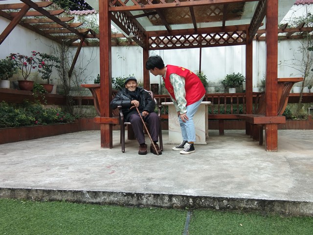 今天是在寒冷冬天里的一个特别温暖的日子。因为暖洋洋的阳光在这天好像突然变得勤快了,毫不吝惜的倾泻在行人的身上和大地上。因此可爱的志愿者们,在这个阳光明媚的下午出发去养老院了。志愿者们开心地走在去往养老院的路上。在到达养老院的门口的时候带队的志愿者仔细地告诉其他志愿者们进去的时候应该做些什么,不应该做些什么。其中最重要的是不可以玩手机。在嘱咐完全部注意事项后,志愿者们就有序的走进了康乐养老院。推开门就见一些老人们正坐在椅子上晒着太阳,聊着闲话。也是,这个天气最适合闲来无事聊聊天了。因此可爱的老人们在这个温暖的下午坐在院里的椅子上聊天,好不热闹。所以有一部分可爱的志愿者们就留在这个温暖的庭院陪这些老人聊天。欢声笑语似乎更多了。