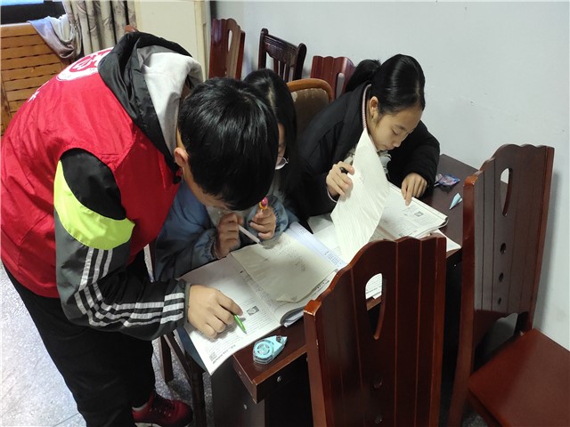 志愿者们步行前往合阳城街道凉亭子社区便民服务中心,当志愿者进入教室时,小朋友的人数还不是很多,等志愿者坐下后,陆陆续续进来了一些小朋友。刚开始他们因为与志愿者不熟悉还很腼腆,然后因为志愿者们在辅导作业时的热情与亲切,逐渐的与志愿者们熟悉起来,那一张张笑脸,是对志愿者的接受和赞同,还展现了属于他们这个年龄的活泼与可爱,与志愿者们的互动也越来越多。