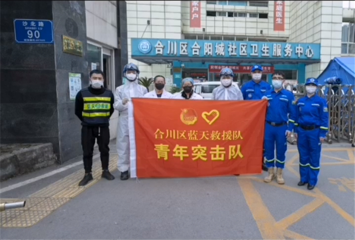 重庆市合川区蓝天救援队青年突击队在疫情期间,自发前往合川医院,敬老院,社区等地进行了酒精喷洒消毒,协助交警道路设障检查过往人员车辆,尽己所能保障居民的安全。