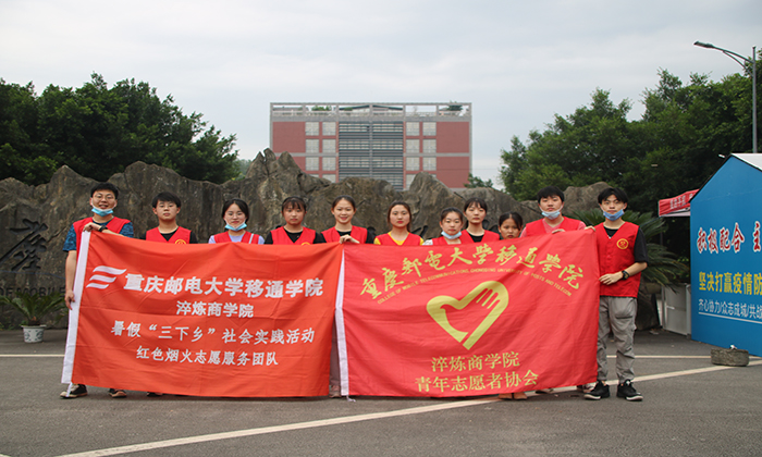 为响应“脱贫攻坚,强国伟业”的号召,也给自己一次走出校园、接触社会、锻炼自己的机会,也是在疫情间让志愿者们通过暑期“三下乡”锻炼自身意志和能力。经过一系列的精心准备,重庆邮电大学移通学院淬炼商学院暑期“三下乡”在7月4日上午7点正式拉开帷幕。淬炼商学院三下乡“红色烟火”的队员们带着严于律己的淬炼精神和朝气蓬勃的心态,穿上红色的小马甲,举起“红色烟火”队队旗开始了黑岩社区的淬炼志愿服务之路。