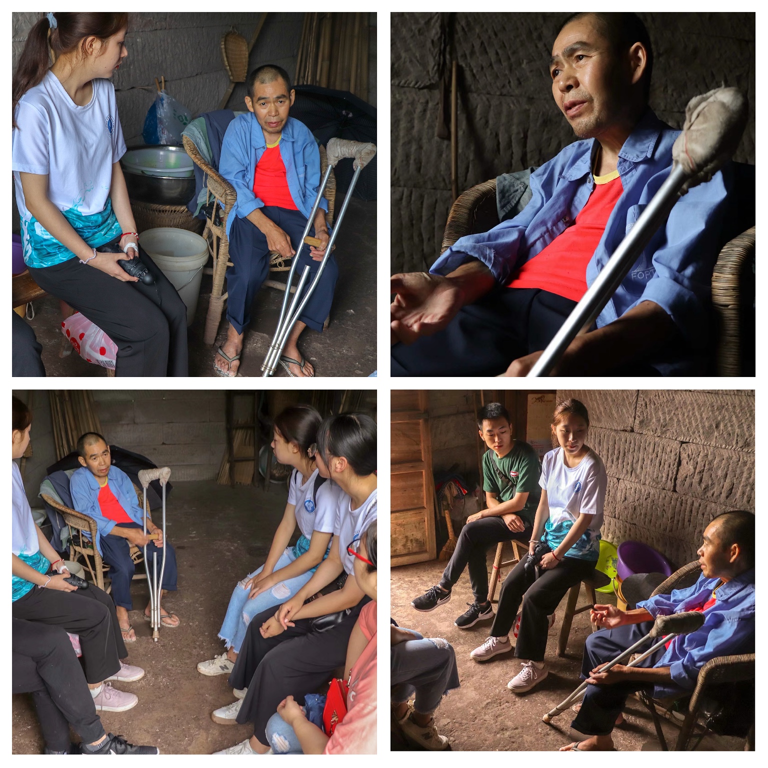 戴花村有这么一群特殊贫困人群,其中就有朝枚之年的老奶奶、疾病缠身的儿子和智力低下的孙子共同居住在简陋破旧的水泥房。深入了解之后,志愿者们发现老奶奶长年节俭生活,于是志愿者们针对实际情况,给老奶奶一家送了油和挂面,温暖的牵手、贴心的慰问、柔和的语气和长时间的陪伴,不仅在精神上给予了老奶奶关爱,还在生活方面让老奶奶一家得到了一定的改善。