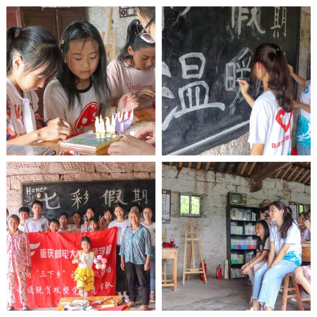 因戴花村受限于经济发展、教育重视程度、教育资源和农村社会氛围等因素,导致孩子的文化和艺术程度远落后于城市的孩子。对此,志愿者们从文化方面入手,当功课的“辅导员”、为留守儿童实现“微心愿”。志愿者们以“一对一”的形式细心辅导孩子们的功课,并为其拓展课余知识。随后志愿者们还为孩子们开展了心愿寄语、唱歌、绘画等活动,丰富了他们的课余生活。这不仅让孩子们在学习和生活中得到了快乐,还让他们对未来充满希望,积极乐观的迎接挑战。