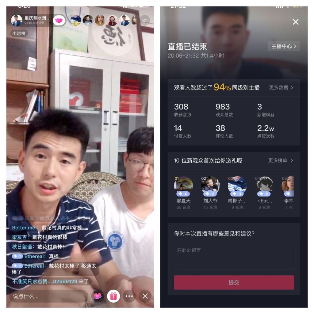 戴花村“直播带货”,开启了“青春助力”的崭新模式。戴花村的特色农产品—莲蓬,品种多、品质好、品位高,但由于疫情原因,导致农产品销售受阻。因此,志愿者们与戴花村团支部书记何波联合行动,通过抖音直播平台详细介绍和“花式”推销了特色莲蓬,全面提高了农产品对外供需信息的对接效率。此次直播,点赞人数高达2万余次,深受广大网友喜爱,“移通学子真优秀”、“戴花村太棒了”、“莲子特好吃”等话语频繁地出现在弹幕上,成功的体现了这次直播为戴花村农产品带来的良好效应。