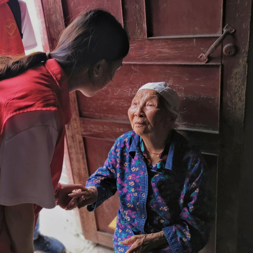 一支笔,一叠纸,一行人。出没在五星村的大街小巷,深入家家户户中,实地对留守儿童与孤寡老人的情况进行走访调研,认真记录每一个重要信息。走访的过程中有老人用颤抖的双手握住志愿者,缓缓道出一声“谢谢”,也有孩童看到志愿者们临走,掏出兜里的糖果,用灿烂的微笑温润志愿者的心田。青春呵护留守,点亮“爱心”之灯。