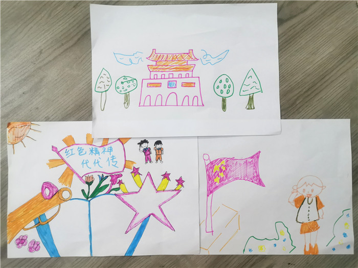为鼓励小朋友们学习先辈精神,继承先烈们艰苦奋斗、实事求是的革命精神,志愿者们与小朋友们共同观看影片《我和我的祖国》。天安门广场的红旗飘扬,中国女排勇夺的三连冠,出租车司机赠予小男孩的奥运会门票,当这一幕幕的画面出现在小朋友们的面前时,现场响起热烈的掌声。通过影片的播放更直观的加强了小朋友对红色精神的理解,当他们拿起画笔将自己眼中最有意义的画面通过绘画表达出来,一纸一笔绘出祖国风采,一描一画彰显革命艰苦。影片中的精神在引导着他们奋发图强,引导他们在长大后要同那些革命先辈一样,为理想信念执着追求,传承红色精神,争取成为栋梁之才,报效祖国。