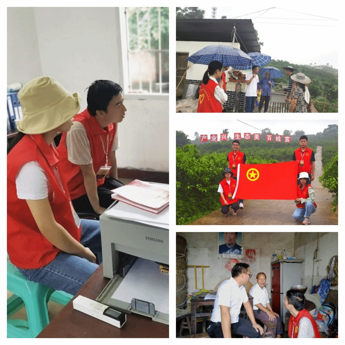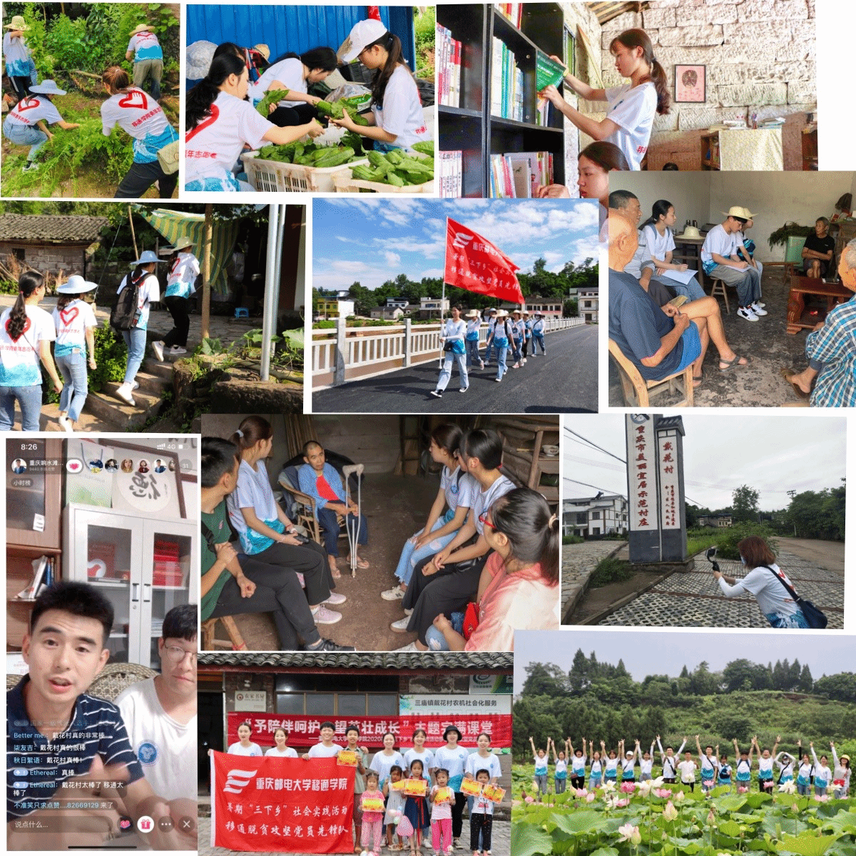 7月7日移通脱贫攻坚党员先锋队在助力脱贫戴花村的道路上画上了完满的句号,回顾帮扶历程,志愿者们做出的努力有目共睹,成绩显著,切实助推了戴花村扶贫工作。“文化+关爱”,筑牢脱贫基石,“走访慰问——关爱贫困户”“整理图书馆——归纳图书”、“关爱留守儿童——开展完满课堂”等一系列的活动。“科技+创新”,强大脱贫引擎,“宣传片—镜头中的戴花村”、“ 志愿者与何书记联合行动—抖音直播推销特产莲蓬”、“利用工具—包装丝瓜”等一系列的活动。“卫生+宣传”,壮大脱贫力量,志愿者们对戴花村的环境卫生从如下两个方面着手:一是从思想上加以引领,向戴花村村民们宣传脱贫攻坚政策及健康卫生知识。二是从行动上加以指引,深入贫困户家中与贫困户一起整治环境卫生。暑期“三下乡”社会实践活动已完满收官,但是志愿的脚步没有停止,“奉献、友爱、互助、进步”的志愿者精神永远在路上。