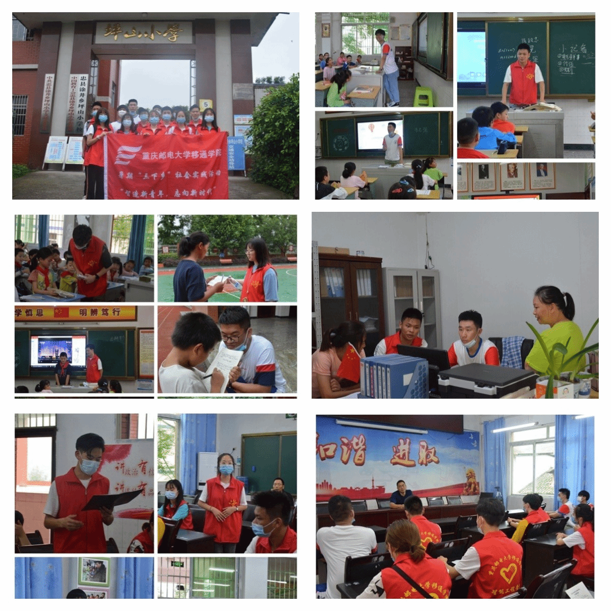7月7日上午8点,“智造新青年,志向新时代”扶贫专项支队成员到达坪山小学,随即组织开展支教课程探讨会议,与坪山小学校长以及各年级班主任讨论此次支教活动的意义与目的。经过简短的会议后,支队相继开展了“扶贫专项活动之未来小小领袖成长营”教学活动,小志愿者们纷纷穿上红马甲,充当起了代课老师的身份。演讲与口才课堂上,第一堂课进行了小记者培训,学生们反响积极;音乐课堂上,学生们伴随着悠扬的歌声齐声歌唱;国学课堂上,诗书礼仪等中国博大精深传统文化熏陶学生们的情操;体育课堂上,趣味运动丰富了学生们的生活。此次“未来小小领袖成长营”活动是志愿者们和涂家村坪山小学学生之间的互补学习实践活动,学生们从多彩课堂学习知识的同时,志愿者们也锻炼了自己的语言组织,表达及综合统筹能力。