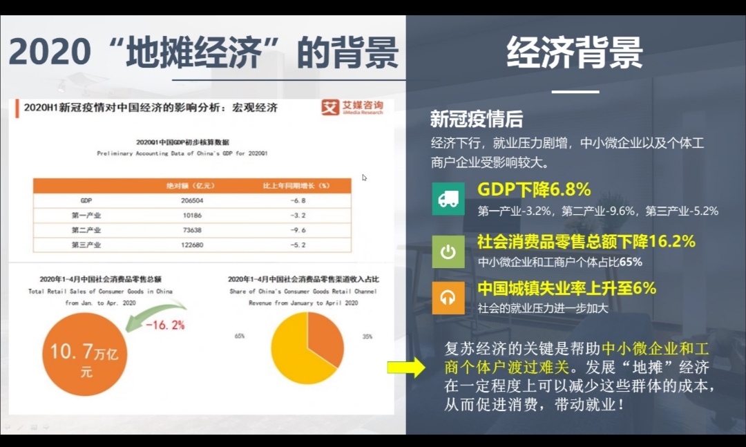 李丹老师从地摊经济的背景、发展历程以及含义三方面为大家进行讲解。首先,从政治和经济两个方面分析了地摊经济的背景。政治方面,2020在全国两会上,释放地摊经济的最大活力。2020年5月,中央文明办明确将马路市场、流动商贩列为文明城市测评内容。直到2020年6月,国务院总理李克强在山东烟台考察时表示,地摊经济、小店经济市就业岗位的重要来源,是人间的烟火,和“高大上”一样,是中国的生机。终于迎来了地摊经济的春天,开始涌现出一系列年度热词,“摆地摊”合法啦、“摆地摊”解决就业、“摆地摊”促进消费等。经济方面,分析了新冠疫情下,经济下行,就业压力剧增,中小微企业以及个体商户企业受影响最大。李丹老师提到,复苏经济的关键是帮助中小微企业和工商个体户渡过难关,发展“地摊”经济在一定程度上可以减少这些群体的成本,从而促进消费,可以有效地带动就业。