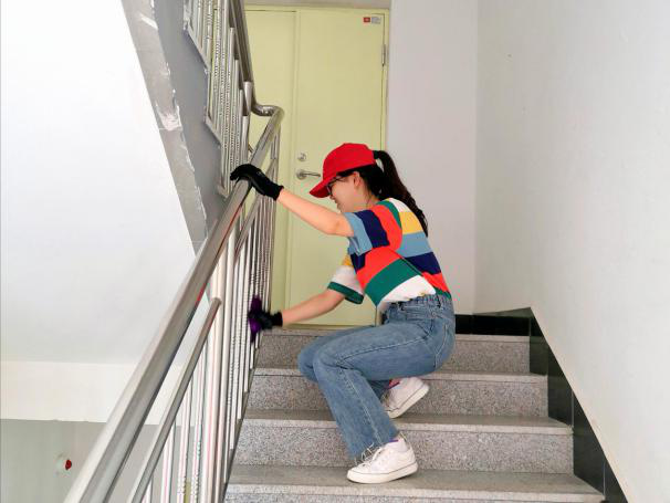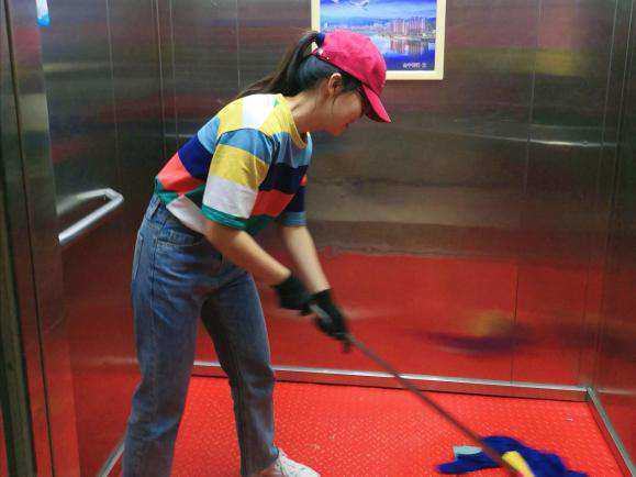 志愿者和阿姨们一起对各个单元门口、地下车库的垃圾桶、小区内部的健身器材、座椅等地方进行消毒。过路的小区居民纷纷对志愿者和清洁人员表示赞扬。不仅如此,志愿者还跟着阿姨们对楼道进行了消毒与清洁。在活动中志愿者深刻的体会到了这个行业的不容易,尊重每一个行业,尊重他们的劳动成果是当代青年的担当与责任。