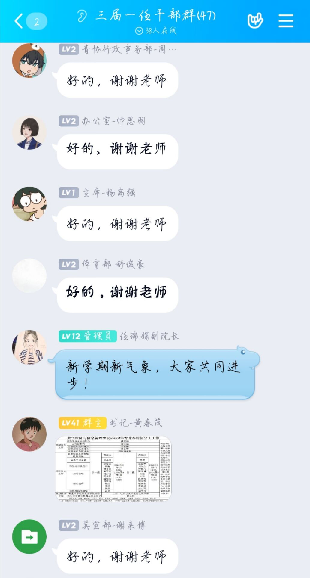 又是一年开学季,为更好展开迎新工作,使学生干部明确自身定位,数字经济与信息管理学院团总支学生会于9月2日晚8点在线上召开迎新动员大会,此次会议邀请到我院副院长任瑞娟老师以及我院学生书记黄春茂、冯记为学生干部指导迎新工作。