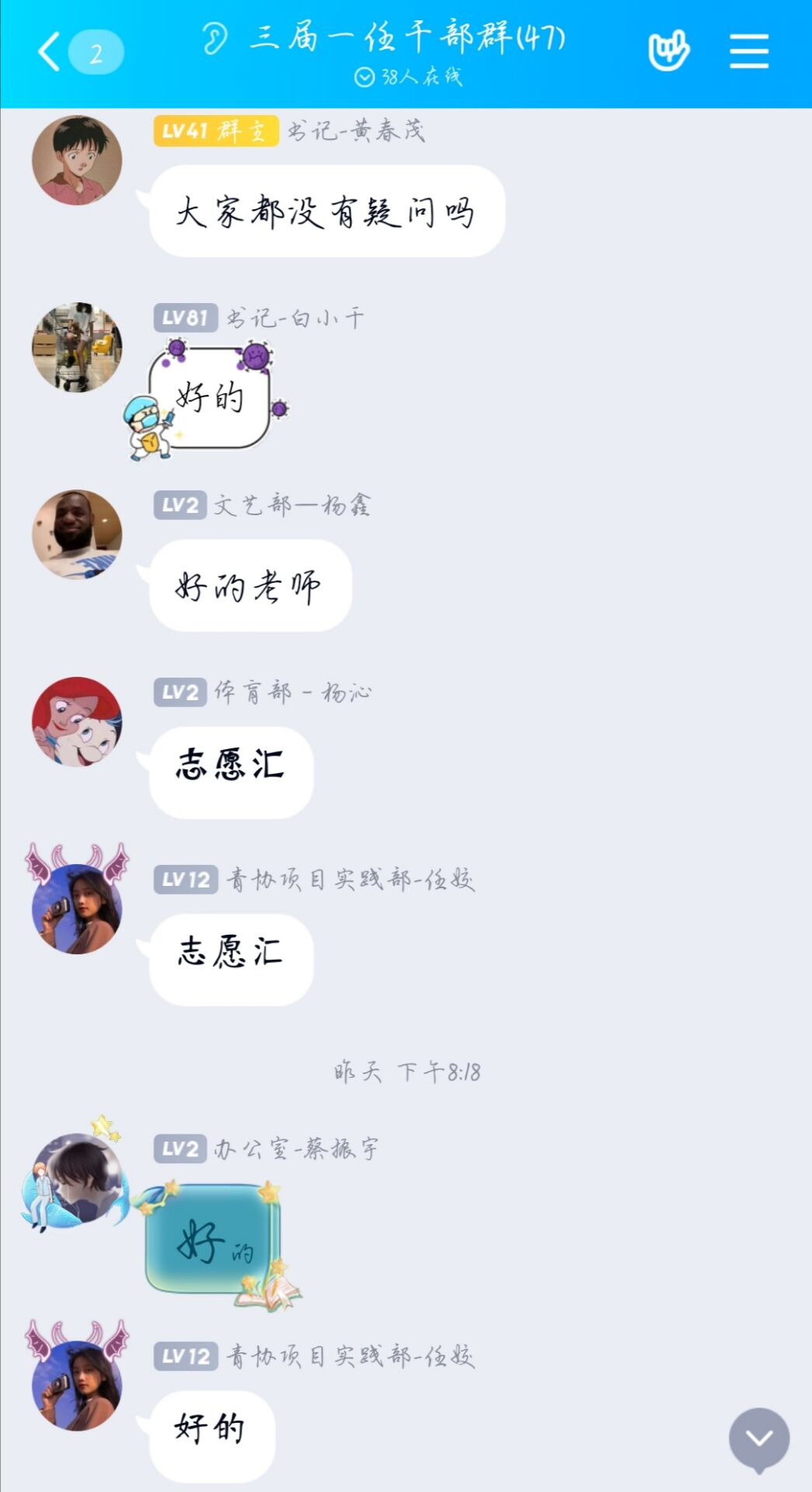 黄春茂书记作为本次会议的主持人,对9月4日至9月6日专升本迎新工作做了如下安排:作为学生干部,黄春茂书记要求我们要以身作则,各司其职,能够通过我校官网和微信公众号等渠道来更深刻地了解我们院相关资料为新生解答疑惑。迎新期间,干部要熟悉新生报道流程,规范着院系服装,禁止穿短裤拖鞋、嬉戏打闹、抽烟,注意疫情防控、人员防暑、物品防丢失,有问题及时上报领导。工作中细节决定成败,在会议中,黄春茂书记着重强调细节的重要性。注重细节的人,不仅认真对待工作,将小事做细,而且注重在做事的细节中找到机会,从而使自己走向成功之路。冯杰书记在会议中提到所有学生会成员应提前下载好志愿汇软件,方便接下来的工作以及学分认证。
