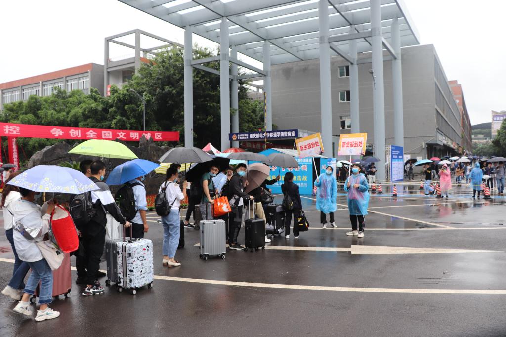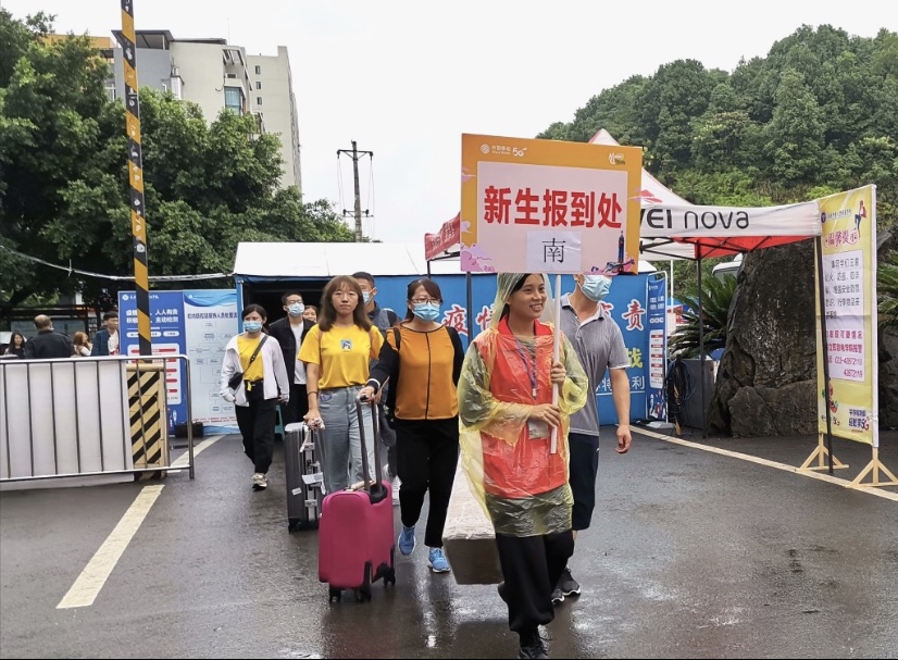 对于刚来学校的萌新们,一切都是那么陌生,但这些志愿服务者们用最热情的态度,最朴实的行动,消释了数不出多少份的不安。每当新生和家长一到校,志愿者就热情的迎上去:“你好,我是迎新工作的志愿者,欢迎来到学校,请问有什么可以帮助你的吗?”,“你好,请问淬炼商学院怎么走吗?”“请到这边扫码关注移通晓英才,里面有详细的报道流程和精美地图”。尽管顶着大雨,但是他们丝毫没有松懈,很好的向新生展示了志愿者风貌。