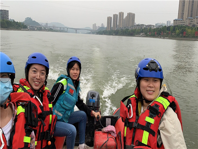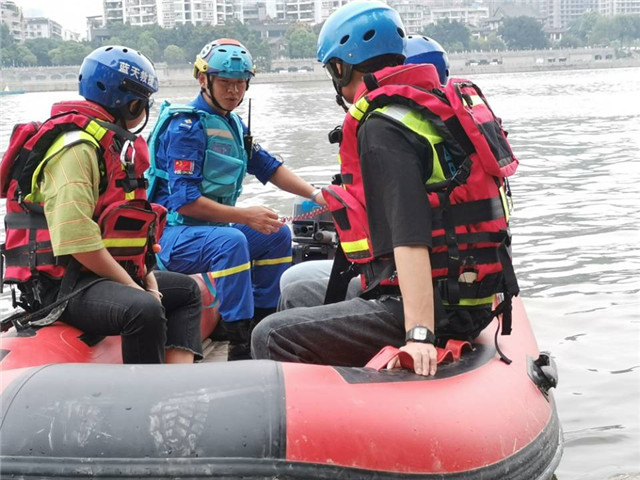 在队员开船的时候,看到江上有游玩的划桨式小舟和游泳者,教官告诉大家要及时拐弯避开,以免冲锋艇排开的浪将人和舟掀翻,如果发现有人溺水,要利用身边资源拉他上岸,不要盲目下水。等所有人都体验完,教官带着大家回到岸边,表示这一次只是一场小培训,以后大家可以再来体验。