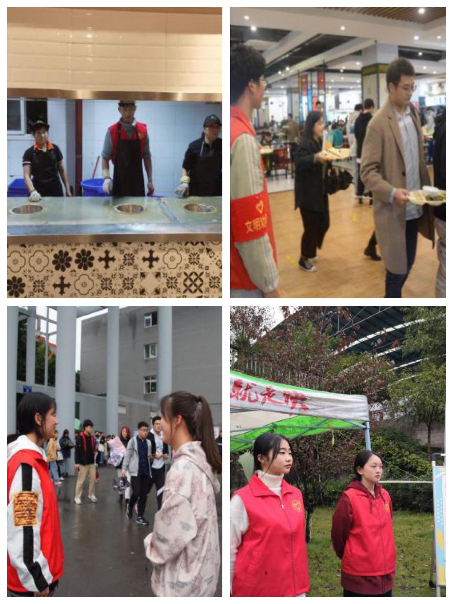 我校在文明就餐方面开展了食堂文明劝导志愿服务活动,活动目的主要是引导学生树立节约的观念和正确的消费观,保障全体师生的安全健康,有效阻断食堂人员积聚造成疫情传播,倡导文明用餐、反对铺张浪费的理念,维持食堂秩序等,食堂文明劝导者们不单单是文明活动的践行者,他们用行动的力量呼吁全体师生在生活中追求绿色文明,用一句句温馨的劝导与提醒让温暖铺满整个校园。不积跬步无以至千里,志愿们从校园生活细节出发,达到以点带面、整体推进文明素质培育活动,实现我校文明素养的逐步提升。在文明健康生活方面,我校倡导低环保的出行方式,培养科学健康的生活新模式,推进全校形成文明健康的新风尚。