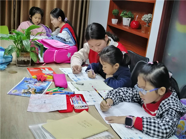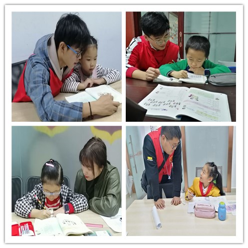 在辅导过程中也遇到过一些小问题,有的小朋友坐姿不太端正,有的坐姿甚至有点危险,但志愿者们都能及时发现,并帮助他们改正,当然,也有一些比较活泼,好动的孩子,而对于这些孩子志愿者们也很有耐心的,告诉他们学习时要认真专一,不能打扰其他小孩子做作业,要学会彼此包容,彼此尊重。小朋友们在还不懂事的年纪却很有礼貌给志愿者的哥哥姐姐问好,在志愿者辅导他们作业的时候也显得格外的认真、安静……