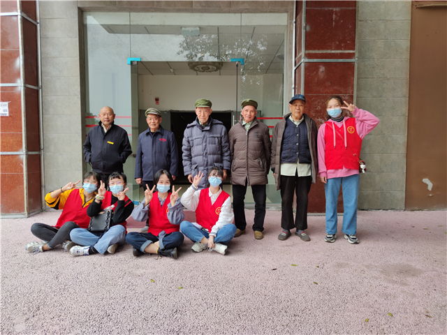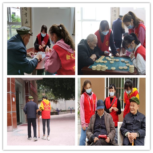 当各位青年志愿者踏进这个地方时,扑面而来的是生活最本质的东西安静和祥和,放眼望去开阔的土地上建立了这一个属于他们老兵的庭院。为了迎合今天的活动,连续的阴雨天也逐渐放晴了。青年志愿者们陪着老人在洒满阳光的椅子上聊天,听他们讲述他们那个年代的革命故事,也不禁感叹着祖国的繁荣昌盛,陪他们聊聊家常,逗他们开心,和他们一起拍照。渐渐的,从最开始的生疏到慢慢的走进他们的心里,青年志愿者们也感受到了来自老兵的孤独,虽然在平时他们互相陪伴着彼此,但是他们内心也渴望着可以有更多的人陪伴着他们,关心着他们。随着时间的推移,青年志愿者也陪伴着老人移步到了室内。在室内,陪着老人看报、下棋,看电视、陪着玩小游戏,从老人们的眼里看见了发自内心的开心。在短短陪伴的几个小时里,各位青年志愿者和老兵建立起了一种常人无法理解的情感,不是亲人却更似亲人。在最后,今天下午的这次青年志愿者活动,在青年志愿者和老兵一起唱响《团结就是力量》的歌声中结束。