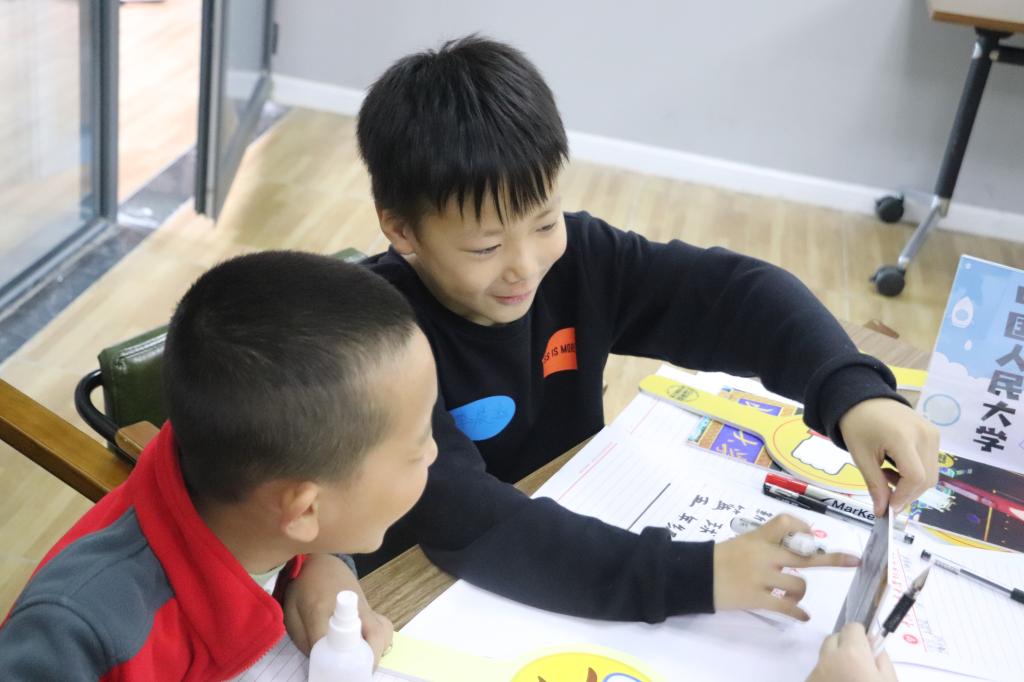 “奋斗所到处,青春恰自来”,立志让人心中有阳光,奋斗让人脚下力量。培训第一步,学员自主按照出生月份或者衣服颜色分组,相同的自成一组,开始“大学拼图”小游戏。拿到相同学校拼图的学员们迅速将学校拼完整,接着通过互动式合作学习,利用手机了解各知名大学信息,并上台对该大学进行介绍。此举让学员在沟通中提高了交流表达能力,也在无形中为孩子埋下了梦想的种子,让他们敢于追求敢于奋斗,体会梦想的力量。