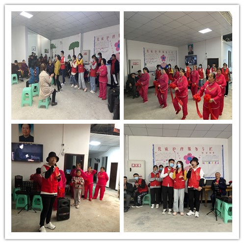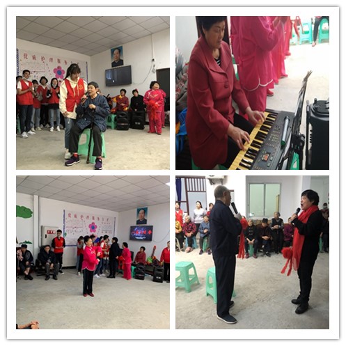 一些头发花白却满脸洋溢着笑容的奶奶扭动着腰肢带来舞蹈《大海航行靠舵手》,将整场气氛推向了高潮。随后,老人们敲击肩、背、脚、头、臂、腰、腿,变换着快慢节奏,带来了舞曲《打元宵》,通过一系列连续的动作,用舞姿展示“夕阳美”。志愿者蒋同学也独唱歌曲《当兵前的那晚上》,铿锵有力的歌声展现出当代大学生独特的魅力。最后,一曲悠扬的《我和我的祖国》结束了整场活动,嘹亮的声音回荡在敬老院的上空……