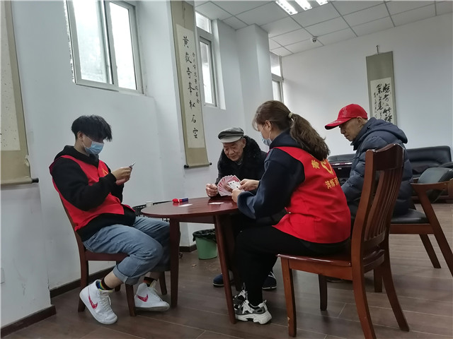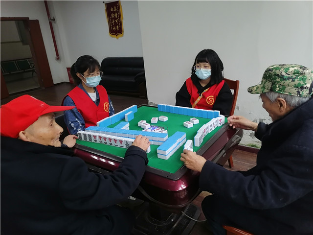 刚到院子,老人们就热烈的欢迎着志愿者的到来,激动地握住志愿者的手。志愿者们通过与老人聊天、散步、打麻将等互动进一步了解他们日常起居,志愿者们的到来也让原本僻静的庭院里多了些许的欢声笑语。住在光荣院的老人一共十五位,他们的年龄均在80岁左右,他们告诉志愿者,经历了抗日战争的浴血抗争,他们身体都烙下了不同程度的疾病,如有些老人走路颤颤巍巍的需要借助拐杖才能正常行走;有的腿脚不便,靠着轮椅度过余生;有的因为听力受损需要人靠近耳旁大声说话才能听清;还有些老人患有老年痴呆、大小失禁等症状。