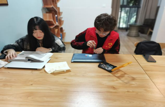 当电脑使用时间较长后,会出现卡顿现象,可能也会偶尔出现设备坏死问题,长此以往就会导致电脑“重病不起”,这些故障会给同学们带来不便。但是大数据与软件大数据服务中心计算机维护志愿服务专项支队是精通电脑、乐于助人的诊断“医生团体”,他们会积极地为同学们检查电脑出现的问题,同时非常欢迎同学们问一些专业疑难。