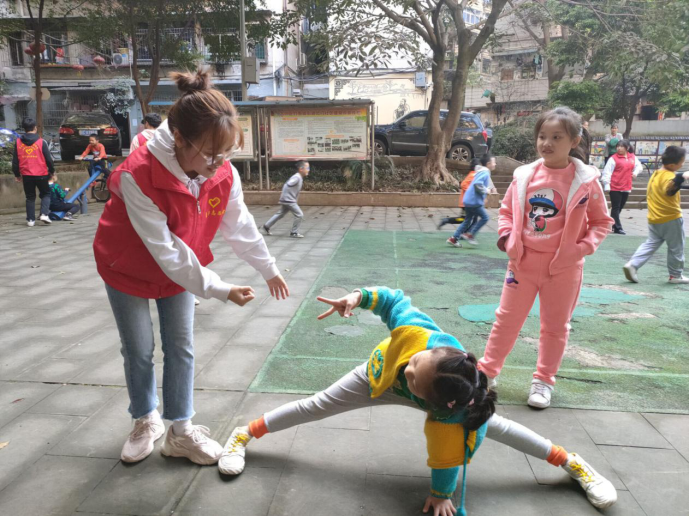 当志愿者们刚刚出现时,原本安静的社区变得热闹,一个接一个的小朋友跑向志愿者。他们都在努力辨认着是否有认识的志愿者,小朋友们欣喜的样子也让志愿者们从心里感到开心。为了能和孩子们打成一片,志愿者们加入孩子们的队伍,与他们一起玩起了老鹰抓小鸡、奥特曼大战、舞蹈歌唱比拼等一系列游戏。志愿者们也主动和一些不太活泼的孩子一起玩耍,渐渐地这些孩子也变得大胆起来,他们也逐渐表现出他们活泼的一面,和志愿者一起学习骑单车,和志愿者一起跳舞。在志愿者的鼓励下唱歌,和其他小朋友一起玩游戏。志愿者们默默地付出,是为了帮助孩子们走出孤独,走进群体,感受群体的温暖,提高信心。志愿者们不仅仅是为了给小朋友们一次短短的陪伴,更希望和小朋友们之间能够互相成为好朋友,让他们能相互陪伴,快乐地成长。