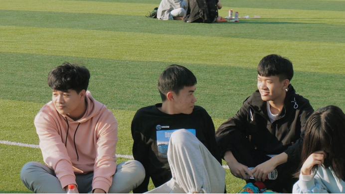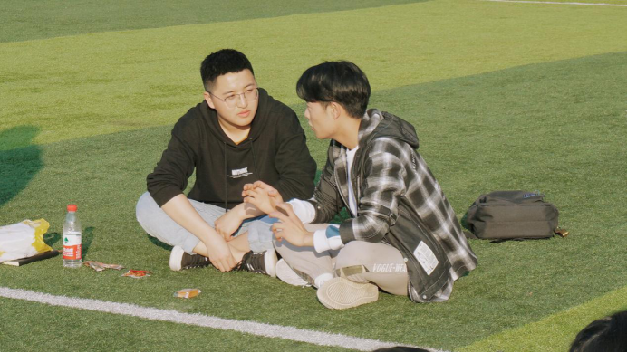 在会议的内容全部讲完之后,大家一同移步到操场进行非常放松地交流。阳光依旧是那么温柔,大家在操场席地而坐,吃着零食,欢声笑语地交流起自己的学校生活以及生活的点点滴滴。